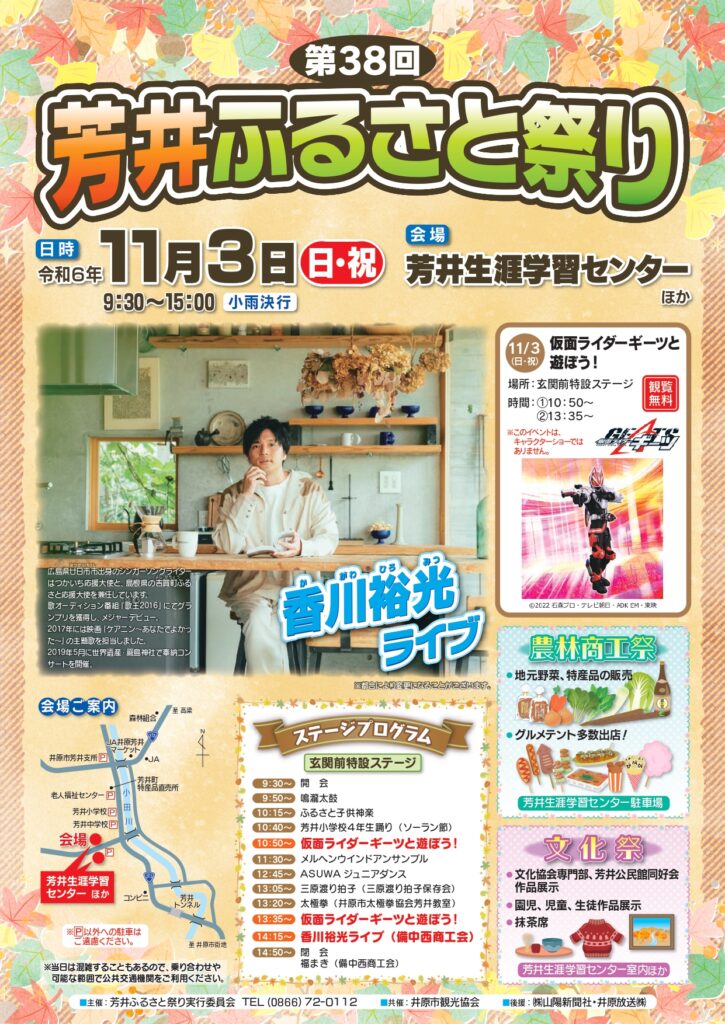 商工会からのお知らせ 第38回芳井ふるさと祭り開催のお知らせ 2024.10.17|イベント 令和6年11月3日(日・祝)9:30から芳井生涯学習センターにて第38回芳井ふるさと祭りを開催いたします。ステージイベントの内容等詳しくは下記のチラシをご確認ください。 第38回芳井ふるさと祭りチラシ 投稿ナビゲーション 前の記事へ次の記事へ 2024年10月 月 火 水 木 金 土 日 123456 78910111213 14151617181920 21222324252627 28293031 « 9月 11月 » 最近の投稿 ウェルビーイング経営 ロゴデザイン募集 第50回矢掛の宿場まつり大名行列 第39回芳井ふるさと祭り開催のお知らせ 井原市ウェルビーイング経営認定申請者募集(令和7年11月末締切) 令和7年度「創業塾」受講者募集 アーカイブ 2025年11月 2025年10月 2025年8月 2025年7月 2025年4月 2025年3月 2024年12月 2024年11月 2024年10月 2024年9月 2024年8月 2024年7月 2024年6月 2024年5月 2024年4月 2024年3月 カテゴリー セミナー イベント 補助金 その他 未分類